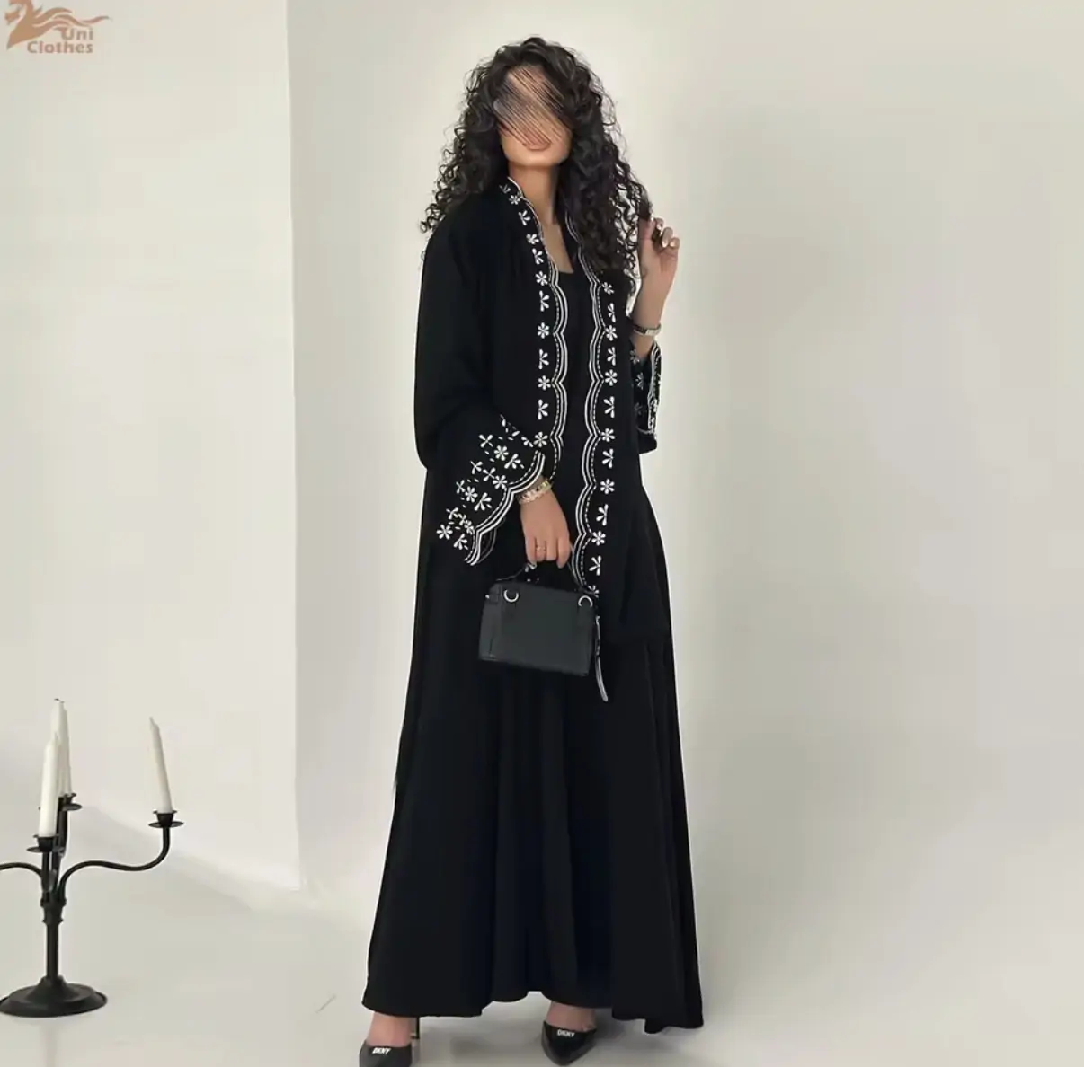 الصفحة الرئيسية اثاث عباءة مفتوحة من الأمام، مطرزة بالزهور