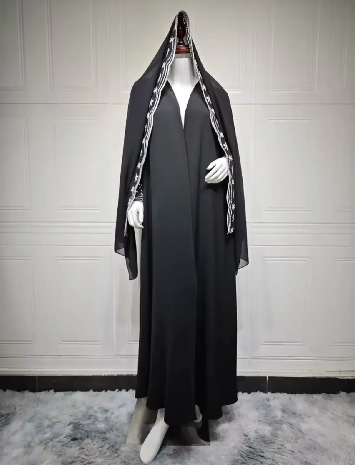 عباءة مفتوحة من الأمام، مطرزة بالزهور