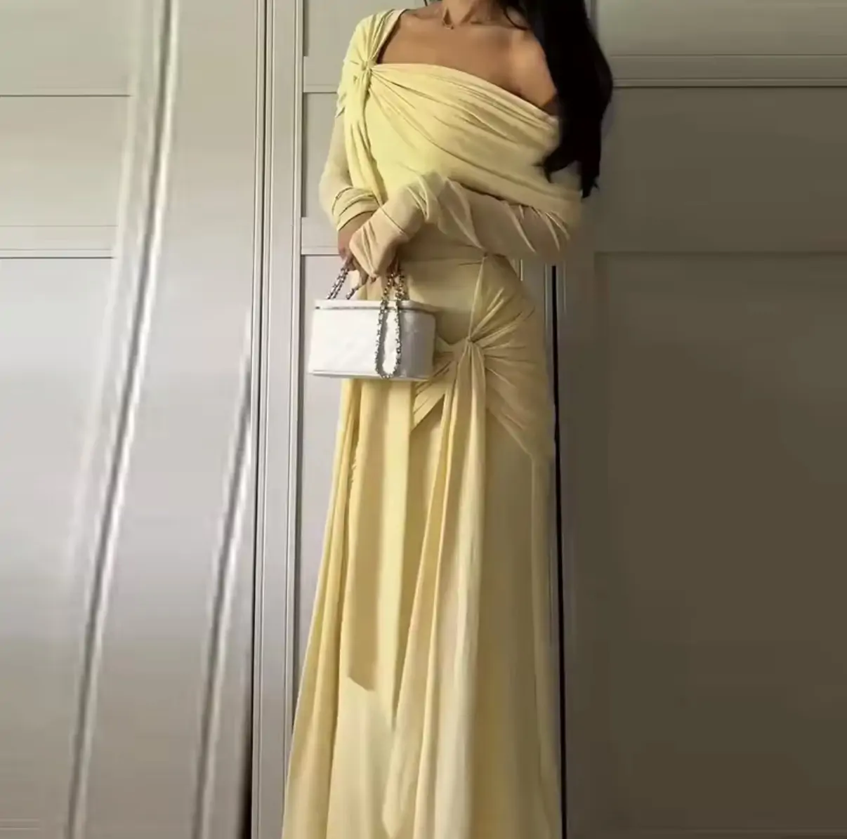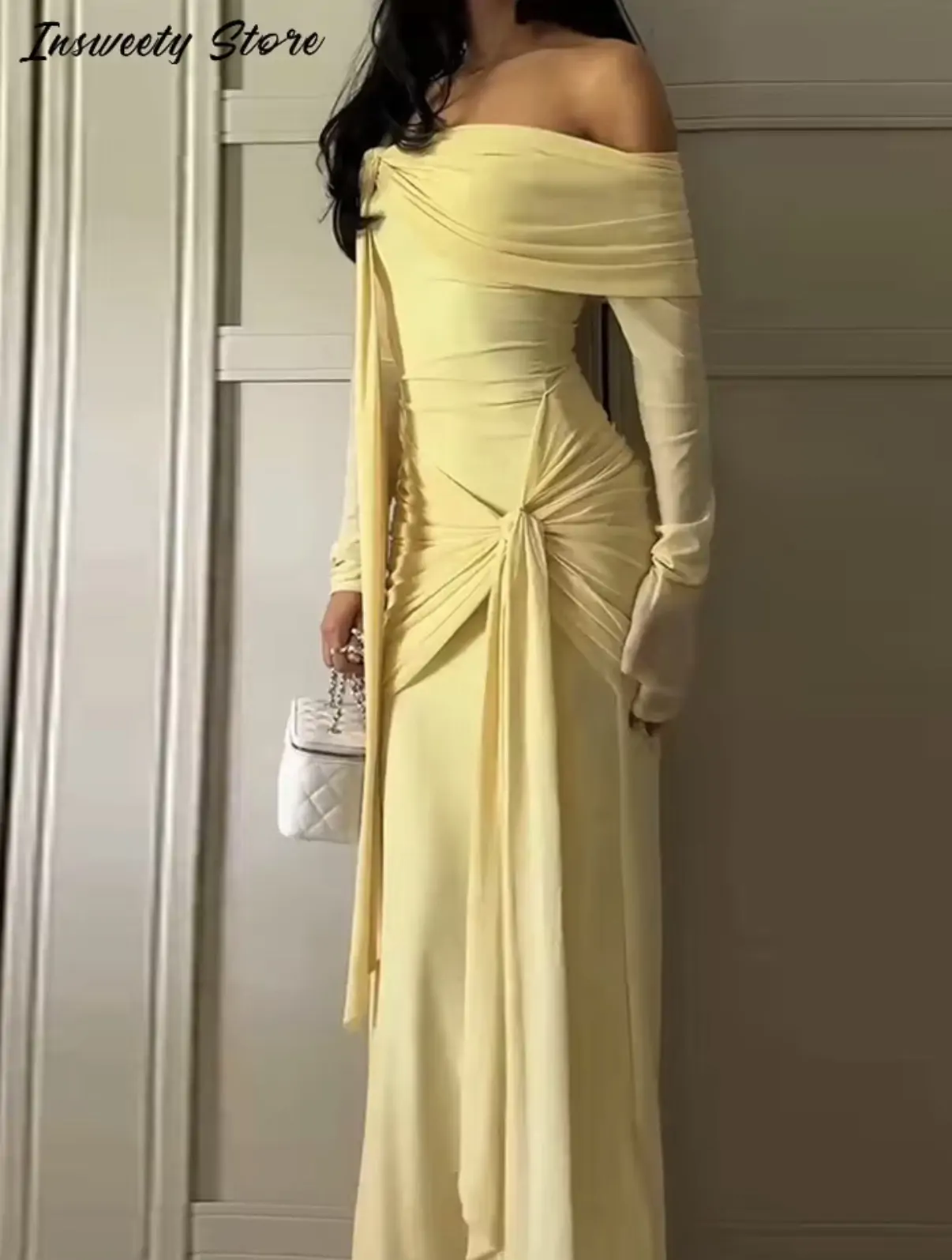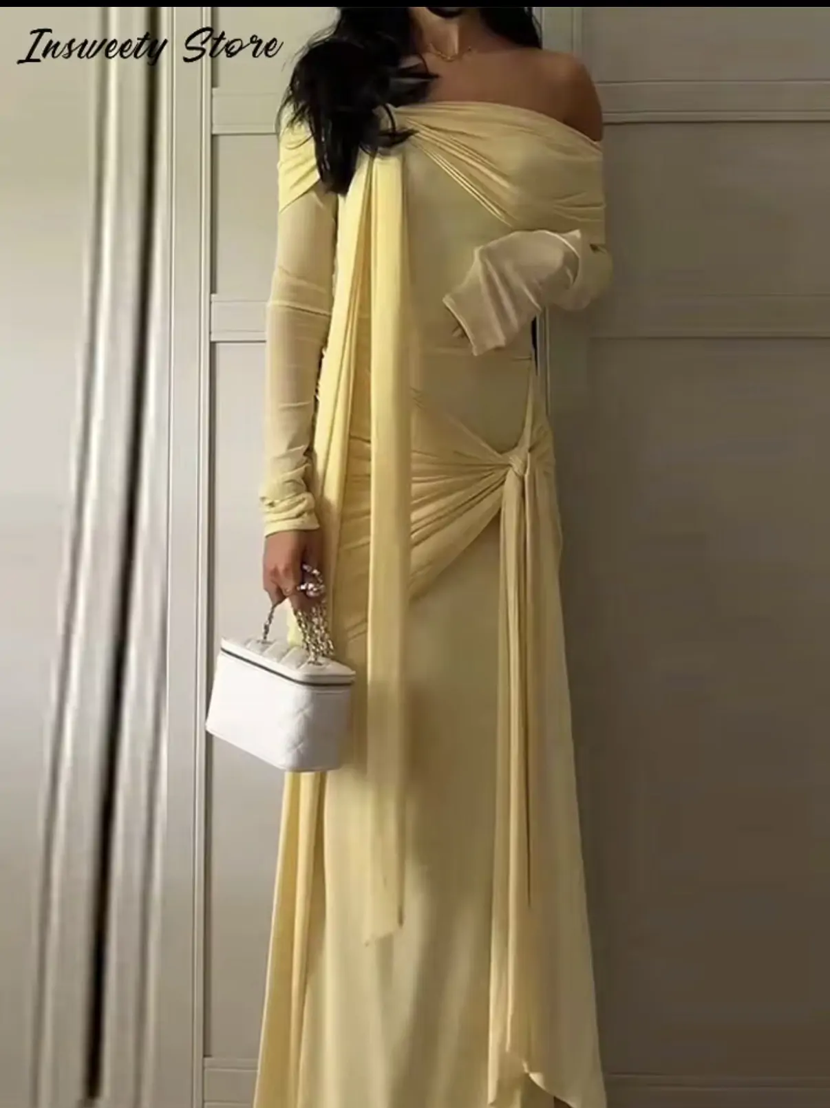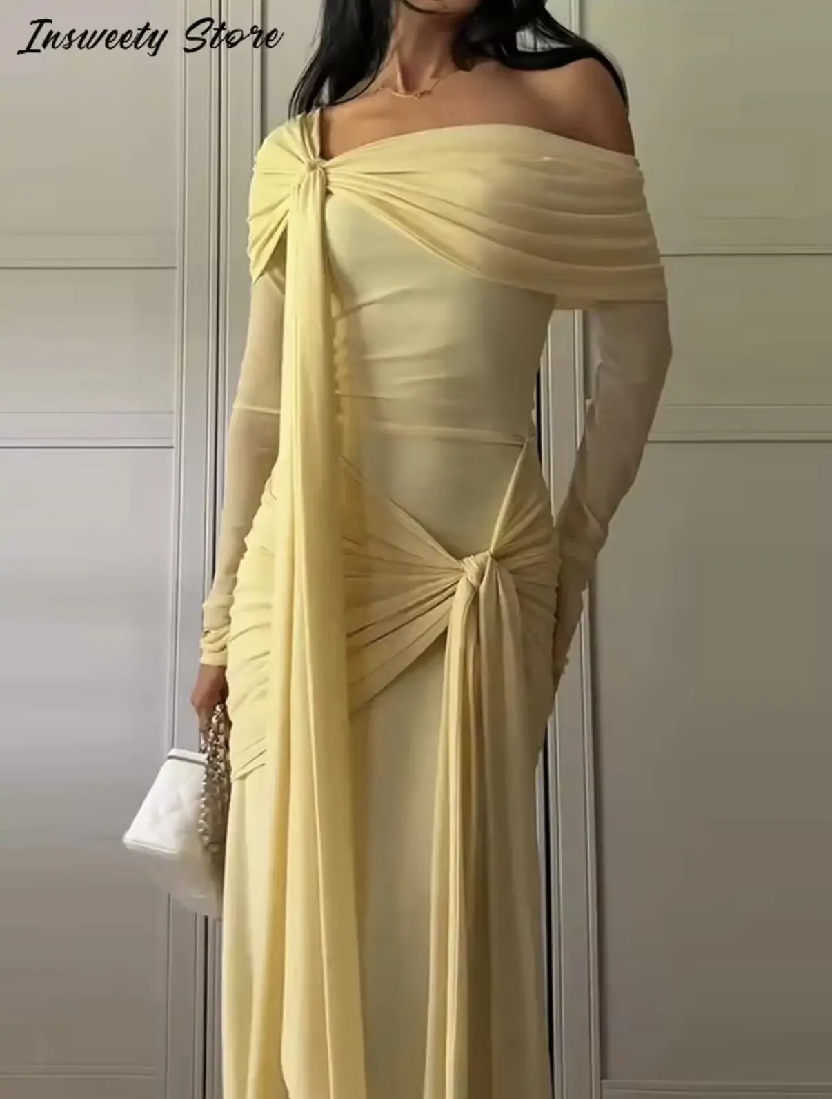 الصفحة الرئيسية اثاث فستان أنيق برباط علوي للنساء مكشوف الكتفين وأكمام طويلة